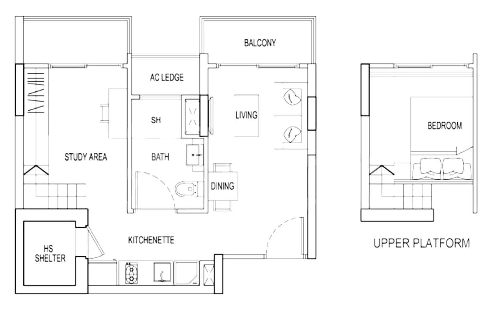 1 Bed 1 Bath (452 sqft)