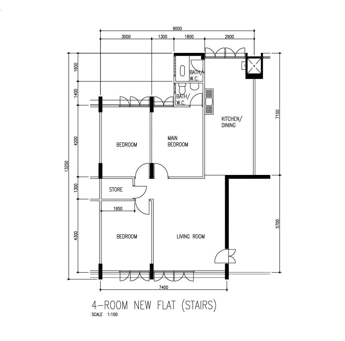 •⁠ ⁠3 Bed 2 Bath (990 sqft) Master Bedroom & Common Bedroom Combined