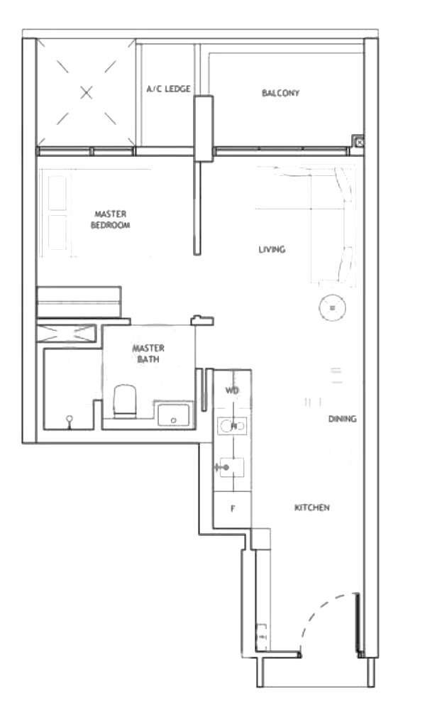 1 Bed 1Bath (495 sf)