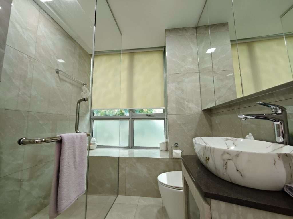 -Enclosed kitchen with sliding glass door. Fine material of bathrooms & kitchen faucets