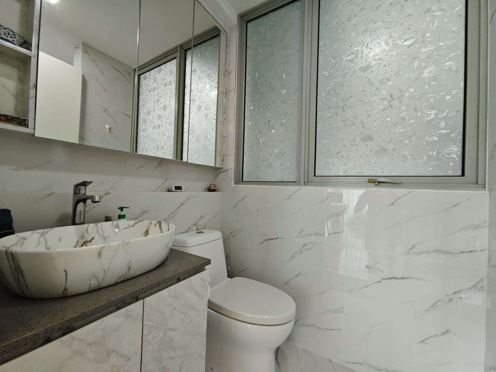-Enclosed kitchen with sliding glass door. Fine material of bathrooms & kitchen faucets