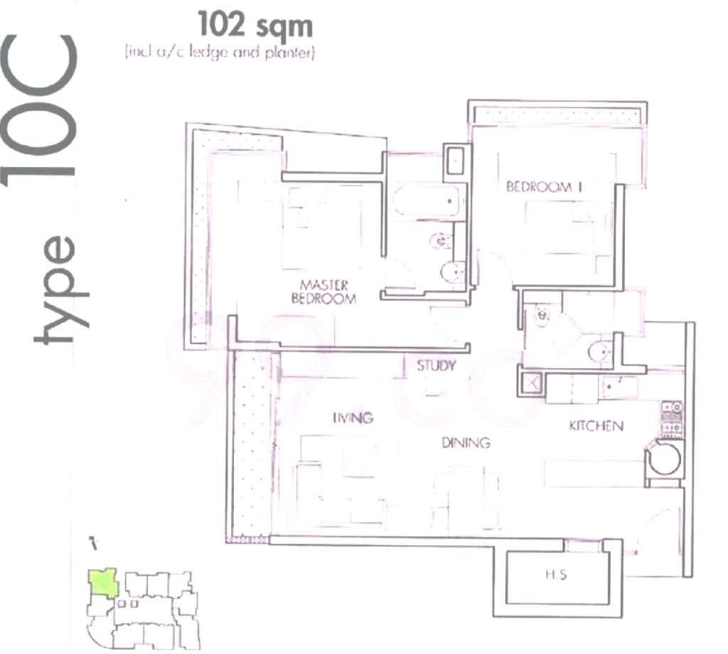 2 + Study (1098sqft)