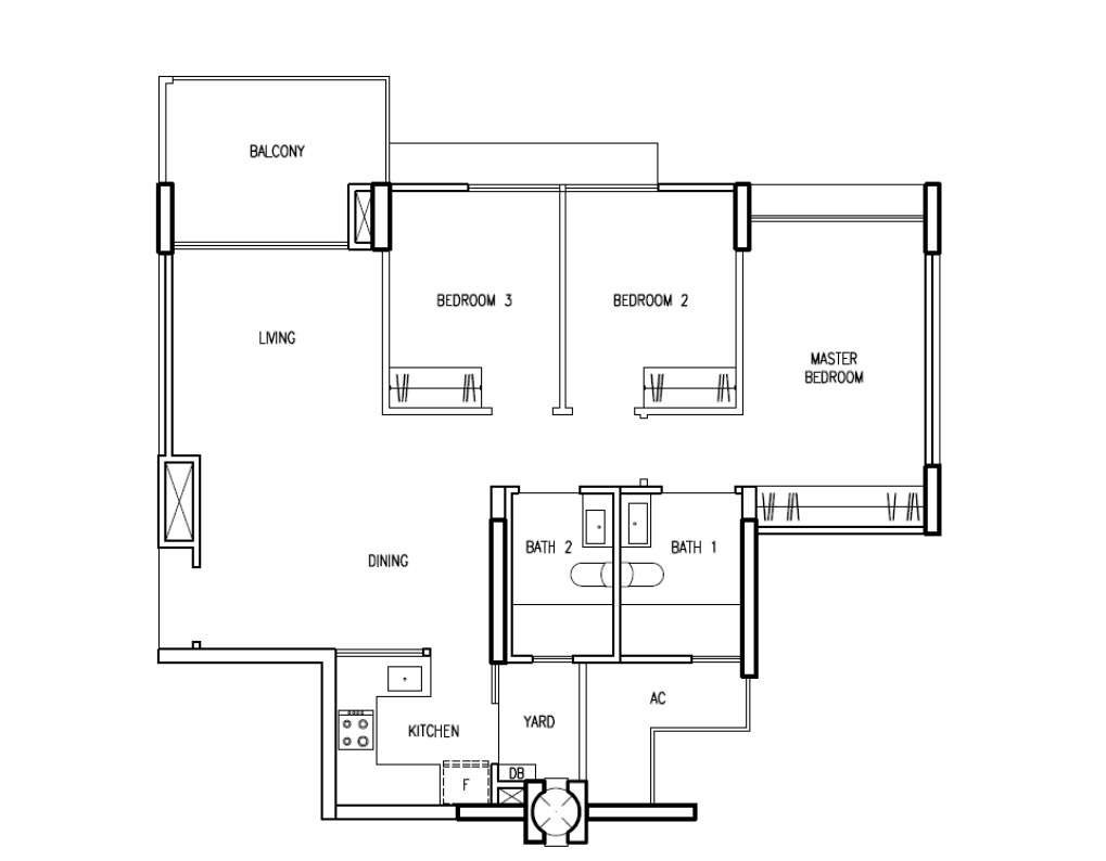3 Bedroom (959sqft)