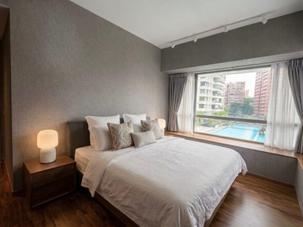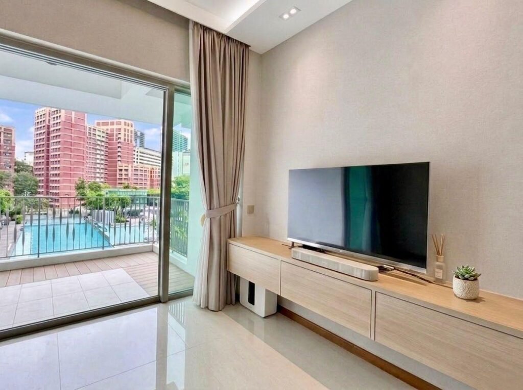 ♢ 1152sqft residence boasting unblocked full-length pool views from the living room and all bedrooms