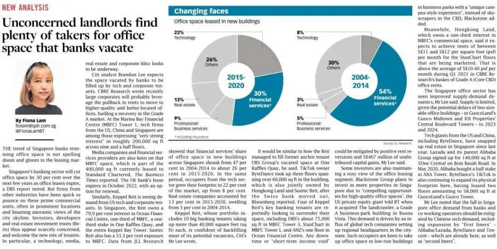 So from this article, it mentions there is strong interest from the various companies, especially tech firms. So these tech firms are growing, so although the banking and finance industry has been decreasing their office footprint in CBD. We can say that the pandemic hastened this process as well.